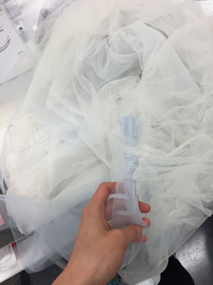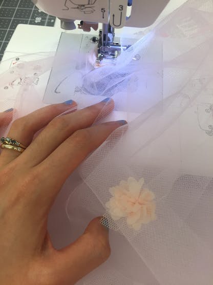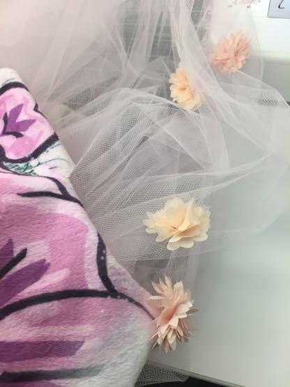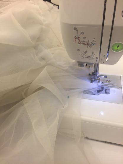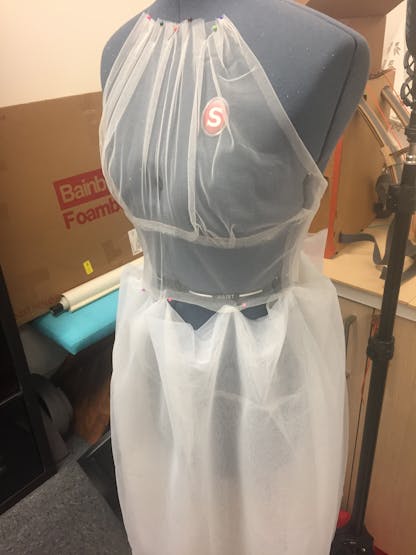 The first step is to make a base layer. I made a halter dress using tulle cut out of a pattern.