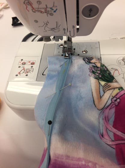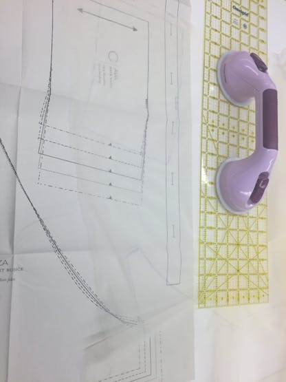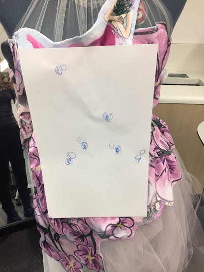 I taped the LEDs onto where I want them to be on based on the graphics. Then I mark the locations on a piece of paper. I used a tulle as the interfacing layer. Since it's transparent, I could sew the LEDs on it with the paper together, therefore achieving transfer of the locations on the interfacing layer.