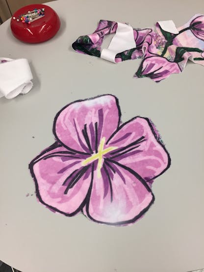 I painted my favorite flowers that are outside our apartment complex and printed it onto Minki fabric. The fabric is very smooth and soft. I wanted to make it into a dress based on the painting.