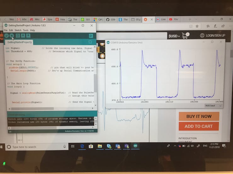 * The Best Way to Get Started With, or See the Raw Signal of, your PulseSensor & Arduino.
