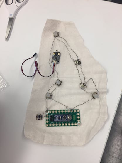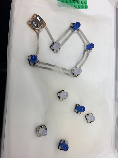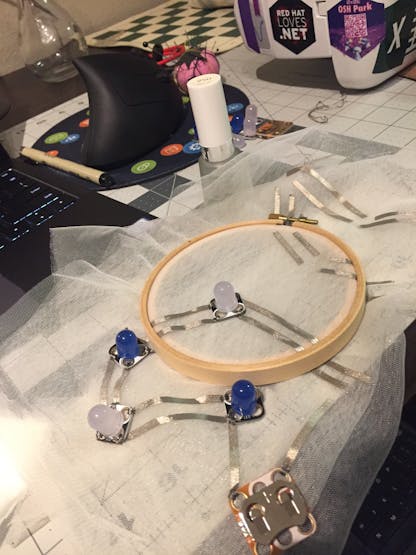 Now that the circuit test is working, I need to sew it up using conductive threads. But I needed to determine where to place the components before sewing them.