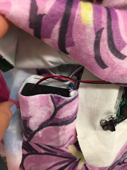 The battery holder is a little big and heavy. It needed a pocket to be attached to the dress.