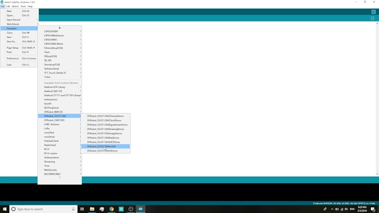 5. Navigate to File>Examples>DFRobot_OLED12864>testall and open this code.