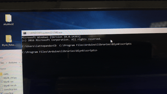 Next, input blynk-ser.bat -c COM5 (where COM5 is the COM port for your LattePanda's Arduino - this might be different for you. You can check in Arduino IDE)