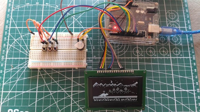 If you were building Tamaguino before, please note that buttons and buzzer are mapped differently on this compared to SSD1306 (I2C) version. It had to be re-arranged so we can use SPI dedicated pins on Arduino.