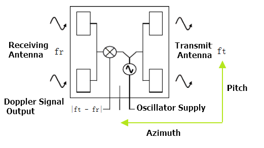 You are correct in understanding it has a HB100 chip. The front is the yellow antenna surface and the top is where the two LEDs are located. Here is a digram that will help you better understand its relative location in reference to the azimuth and pitch . https://uploads.disquscdn.c...