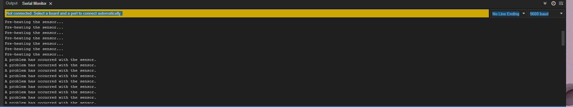 Hey, so whenever the sensor preheats its self, it then auto selects https://uploads.disquscdn.c... the sensor isn't working. does the sensor have to auto Cal itself for 24 hours consistently, or is it something in my code?