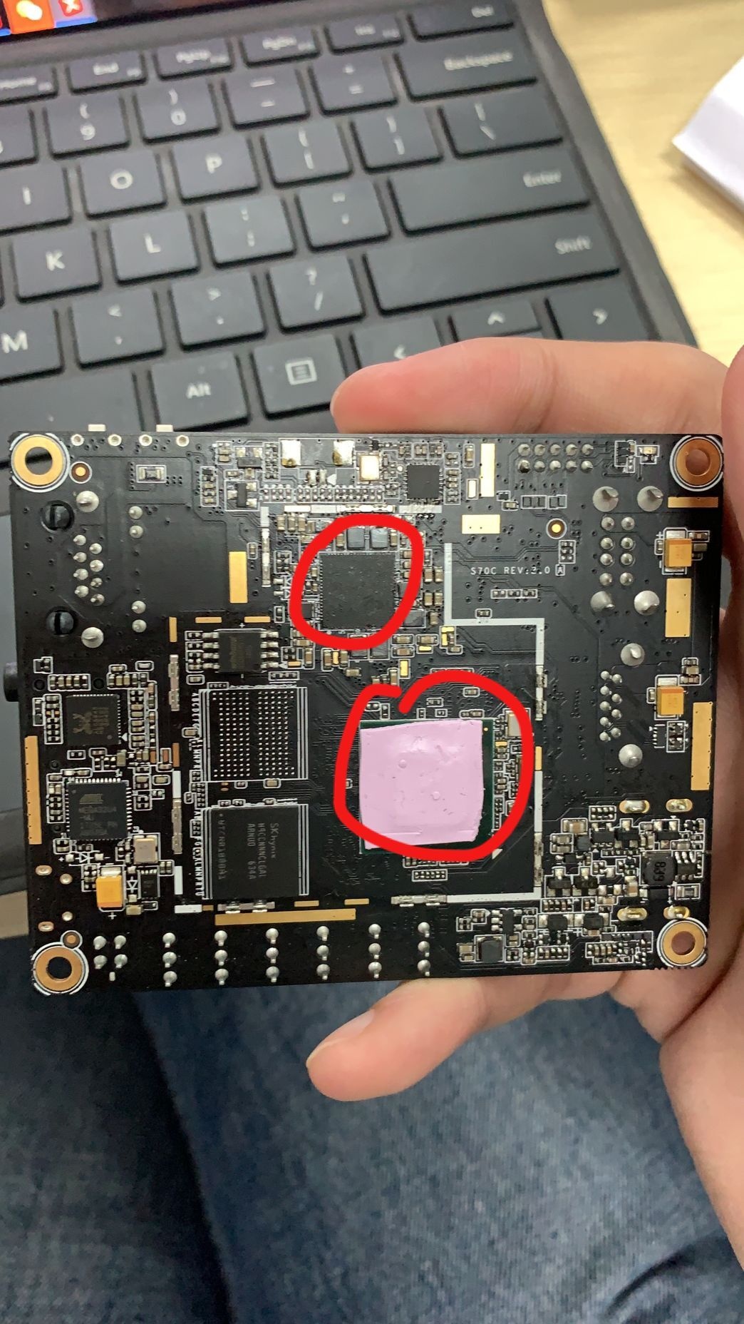 Normally, power converter, wifi and cpu chips are the ones emit heat the most. Wifi chip is on the front side, and the other two are on the back side. https://uploads.disquscdn.c... https://uploads.disquscdn.c...