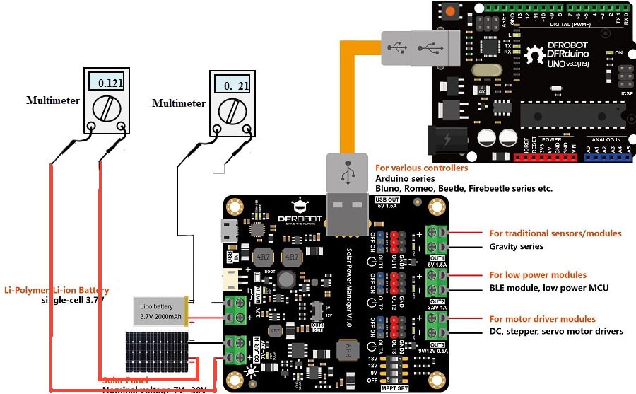JaneYu Recently i have bought the 3 piece of solar power manager. While testing it with the 20W solar panel with the configuration as below pic with MPPT set to 18V , the peak charging current is observed only of .5 A instead of your specification shown 2A. What could be the wrong with my setup? https://uploads.disquscdn.c...