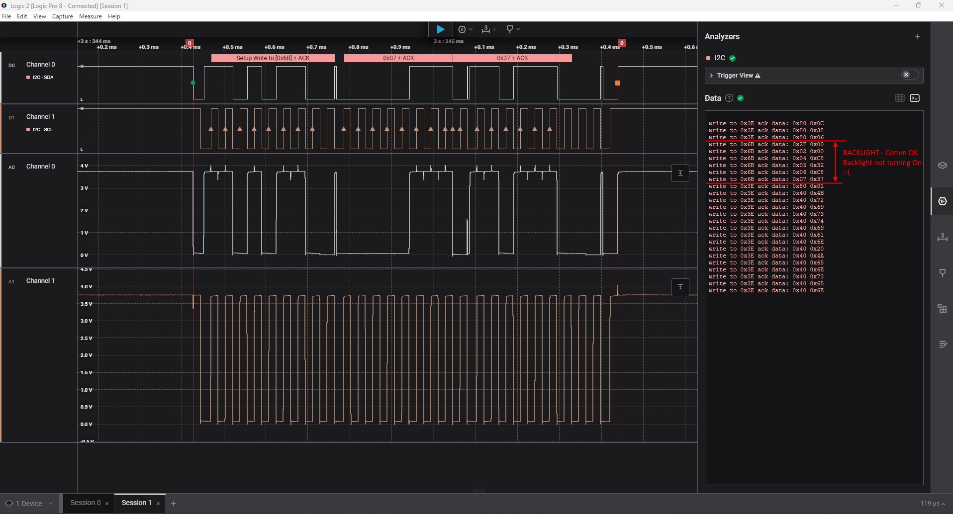 JaneYu It is the address of the back light port that changed. In display V1.0 the address was 0x60 and now (V1.1) it is 0x6B.