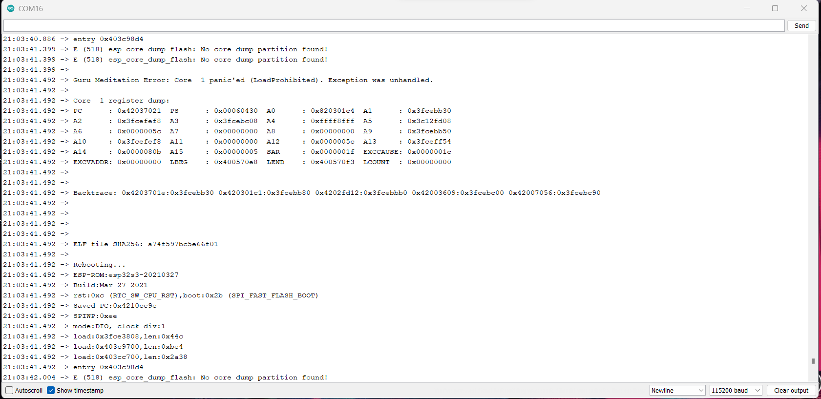 I have tried to use the web cam example from the library, but it's showing this in the serial monitor. I have tried with different partition schemes.